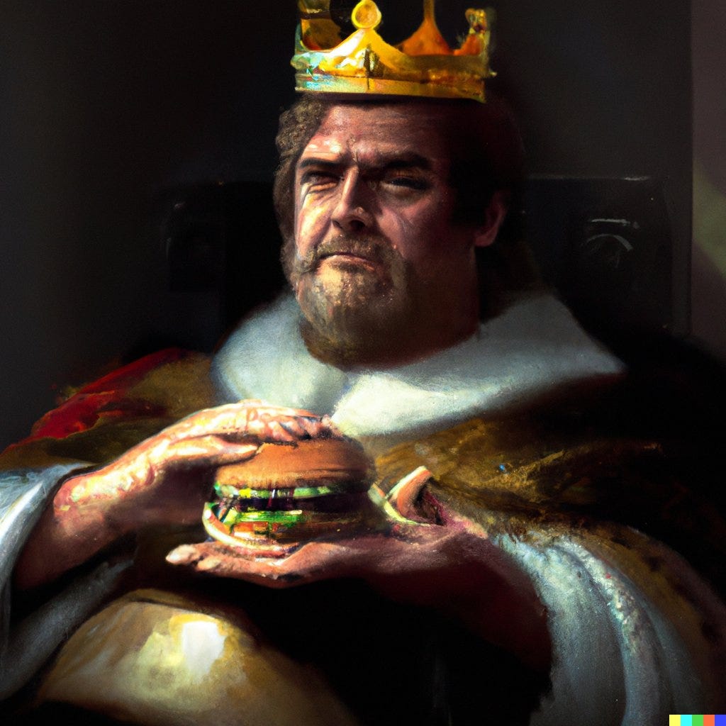 👉🏼 OpenAI’s powerful new neural network DALL-E 2, the latest artificial intelligence system from the company co-founded by Elon Musk, can turn simple text prompts into incredibly beautiful and realistic-looking works of art. For this “painting,” OpenAI market manager Adam Goldberg instructed the neural network to create “an oil painting portrait of the real Burger King posing with a Whopper” — and here’s the result!